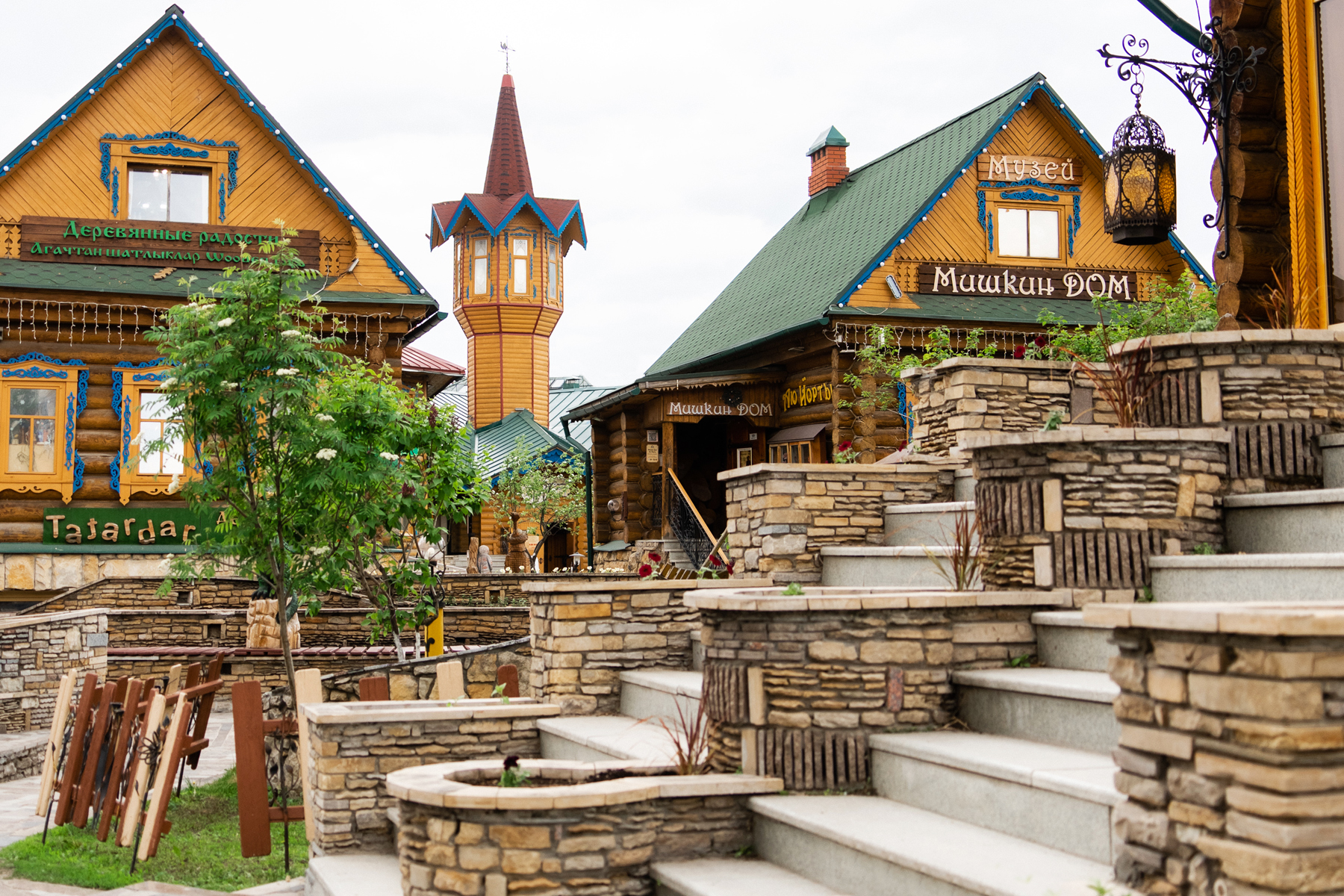 «Туган Авылым» в переводе с татарского — «родная деревня». И это в самом деле старинная деревенька с деревянными домиками, фонтанчиками и лавчонками, выросшая в самом центре современной Казани.