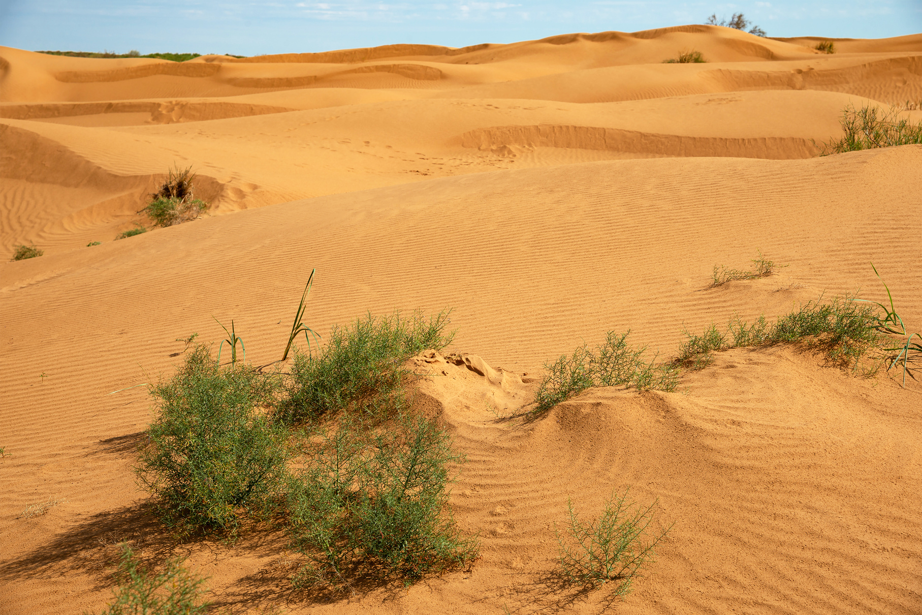 В отличие от африканской, астраханская пустыня небольшая — настолько, что с вершины центрального бархана Большой Брат видна окружающая ее зеленая степь. Но это не отменяет того факта, что холмы золотого песка в этом регионе — чудо природы. Тем более пески еще и бродячие: месторасположение и очертания барханов постоянно меняют ветер и осадки.