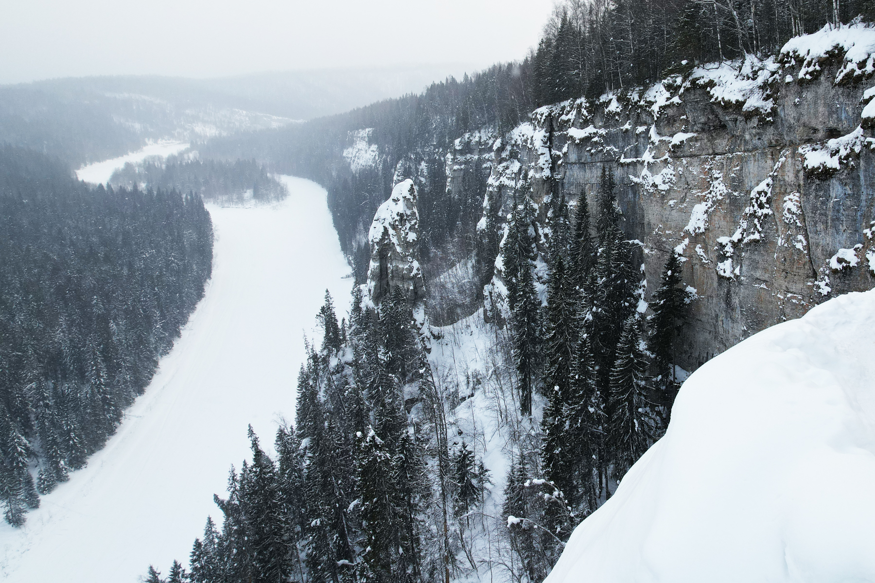 А зимой природа творит еще более впечатляющие чудеса: надевает на скалы снежные «шапки», заковывает реку в лед и пускает в воздух хлопья, зависающие в воздухе солнечными искорками.