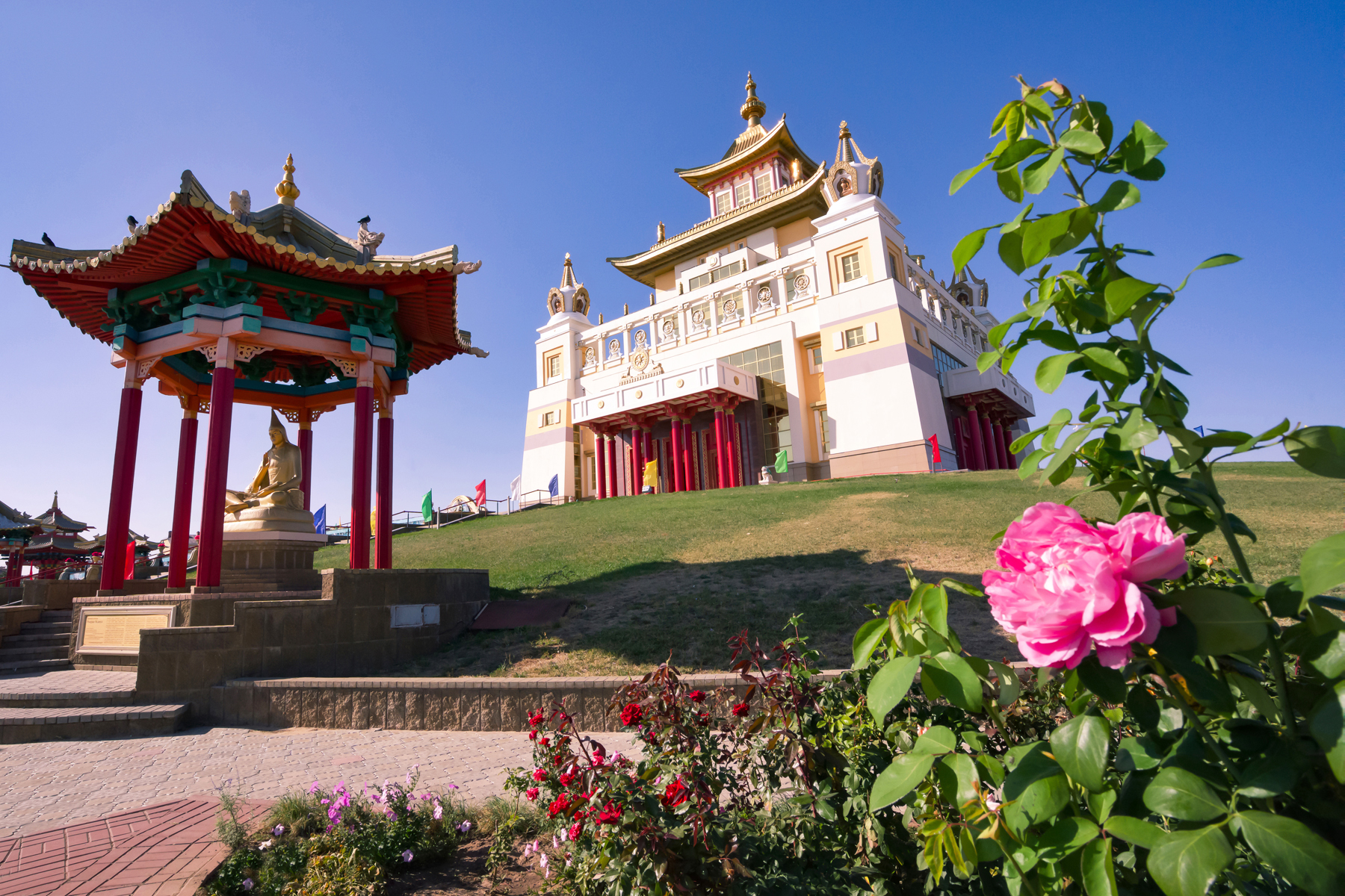 Основная религия верующих калмыков — буддизм тибетской школы Гелуг, поэтому в Элисте много буддийских храмов и мест силы. Главные из них вы посетите во время экскурсии.