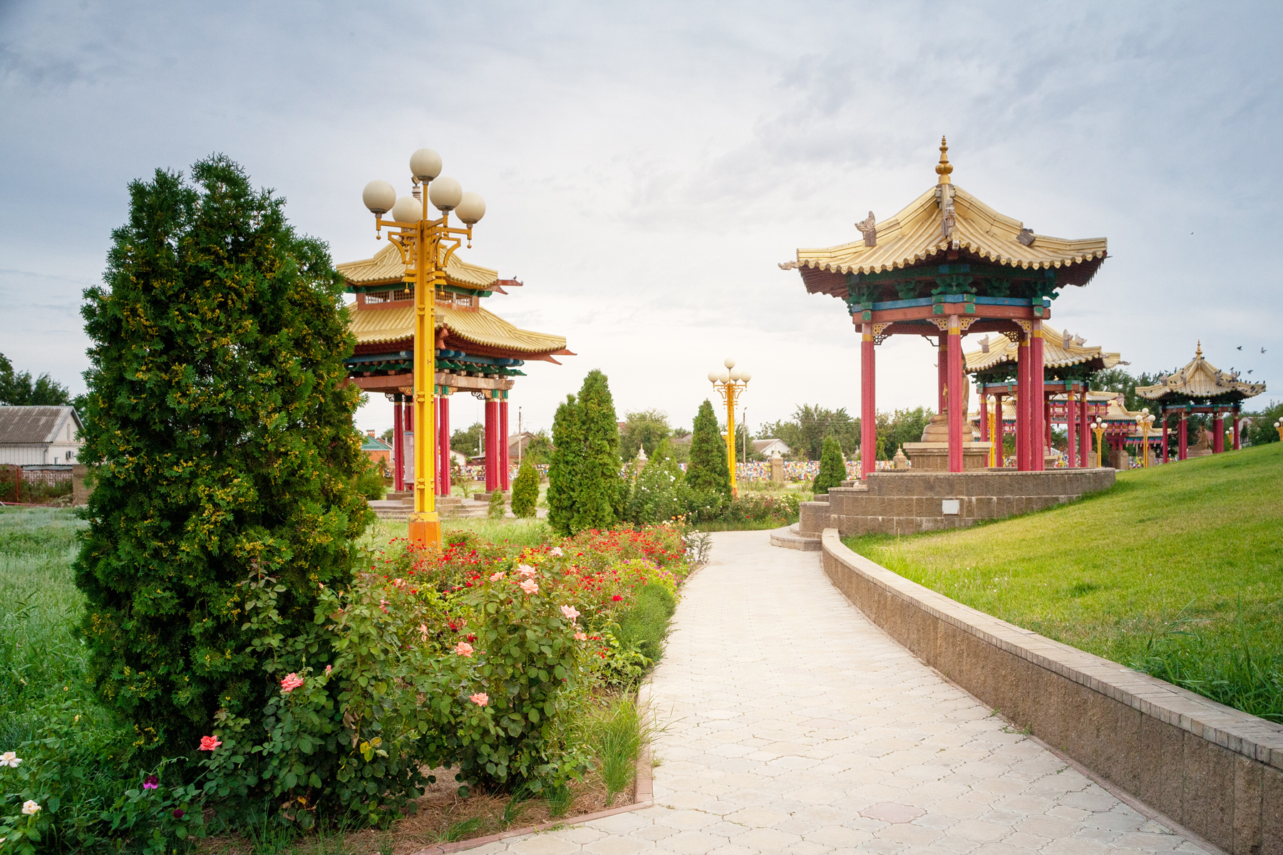 Буддийский монастырь «Геден Шеддуп Чой Корлинг» и хурул «Сякюсн-Сюме». Монастырь расположен в шести километрах от Элисты. В 1992 году он был освящен самим Далай-ламой XIV — и именно он отметил место, на котором спустя четыре года возвели хурул «Сякюсн-Сюме». Двухъяруснуя пагода производит впечатление тихой обители: никакого шума и суеты, только аромат благовоний и мирно сидящий среди роскошных росписей позолоченный Будда высотой почти четыре метра.