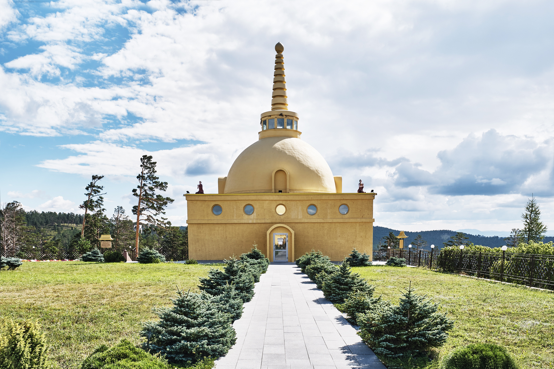 На огромной монастырской территории — 10 храмов в тибетском стиле, оранжерея, Камень желаний и нетленное тело буддийского подвижника.