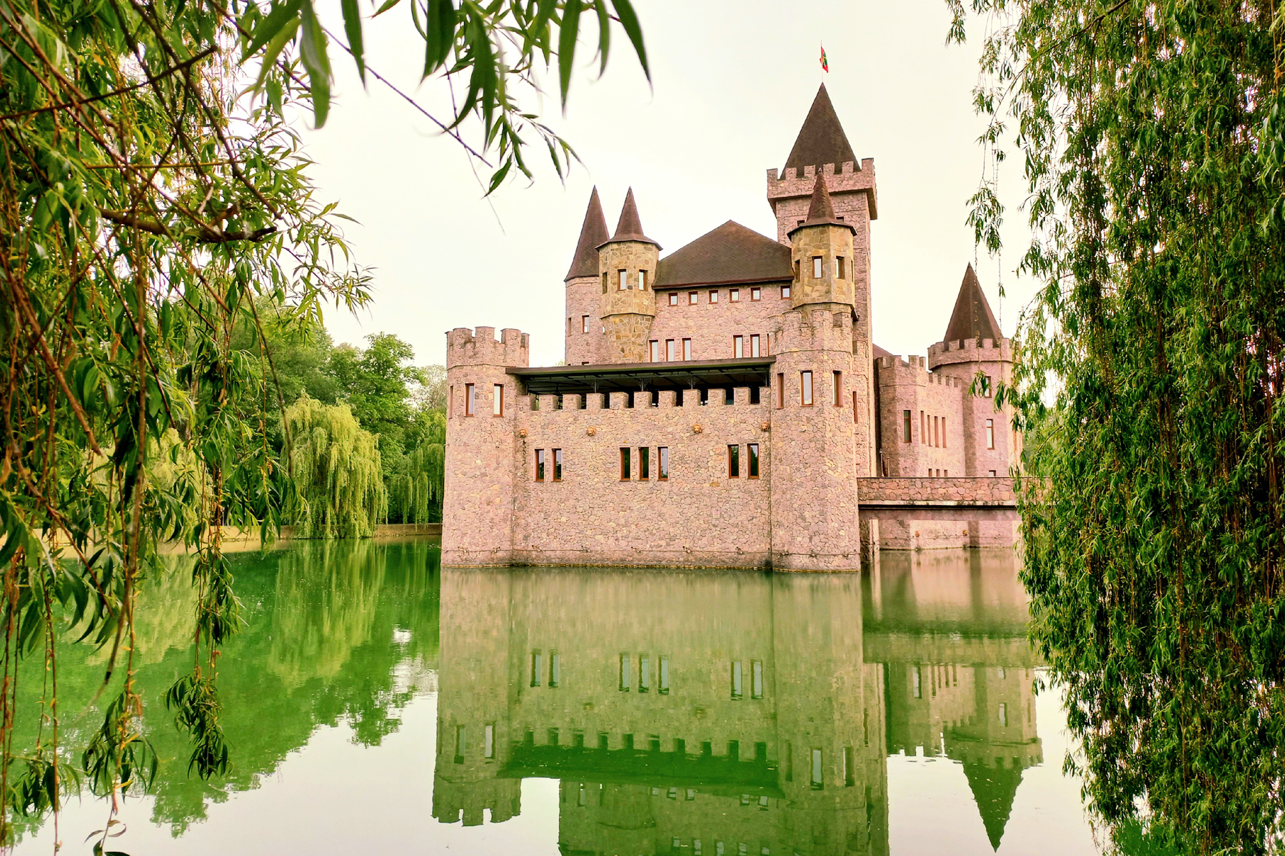 Но статус новодела никак не отменяет факта, что Шато Эркен — архитектурный шедевр. И не только потому, что его остроконечные башни и зубчатые стены с бойницами выполнены в точности в романском стиле. Главная особенность в том, что замок буквально «вырос» из воды. Для этого сначала построили само здание, затем заполнили территорию вокруг искусственным озером и соединили с «большой землей» мостом.