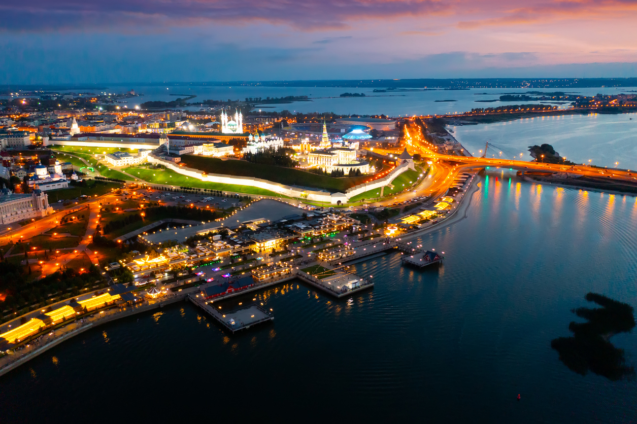 Причем это касается не только исторических объектов. Стадион «Ак Барс Арена» (домашнее поле казанского «Рубина») после заката выглядит фантастическим инопланетным кораблем — спасибо медиафасаду и футуристичной архитектуре.