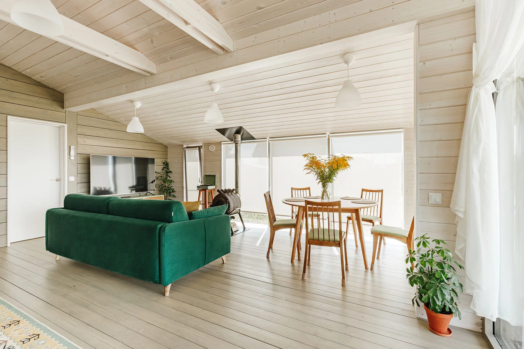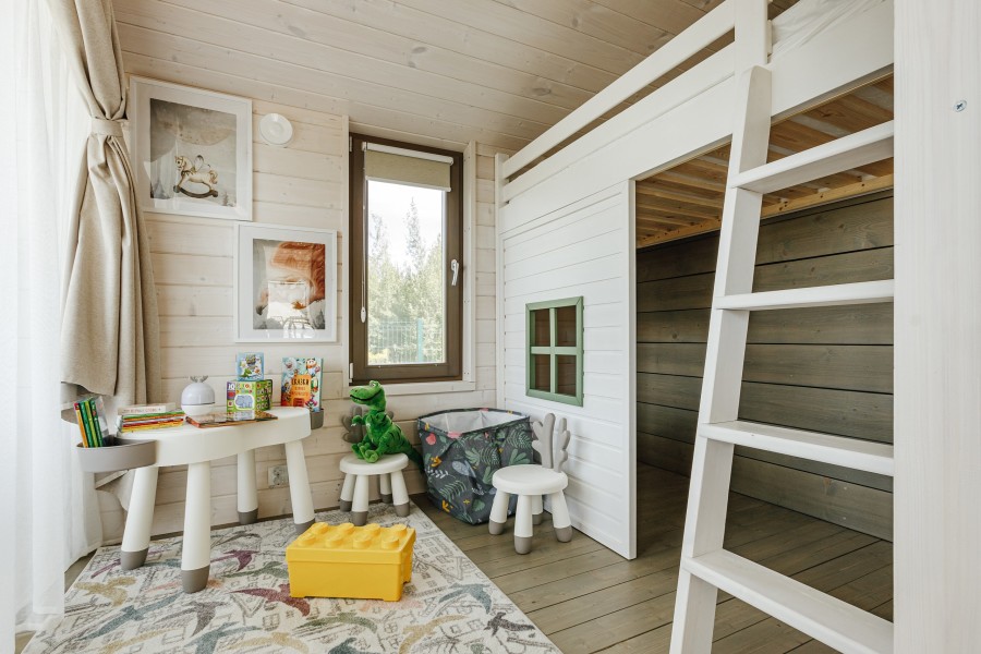 «ДубльДом» в Суздале получился особенно уютным. Здесь светлая просторная гостиная, которая совмещена со столовой и кухней, ванная с теплыми полами, кукольный детский уголок, две спальни и просто роскошная веранда с видом на русские березки, поля, лесок и реку Каменку.